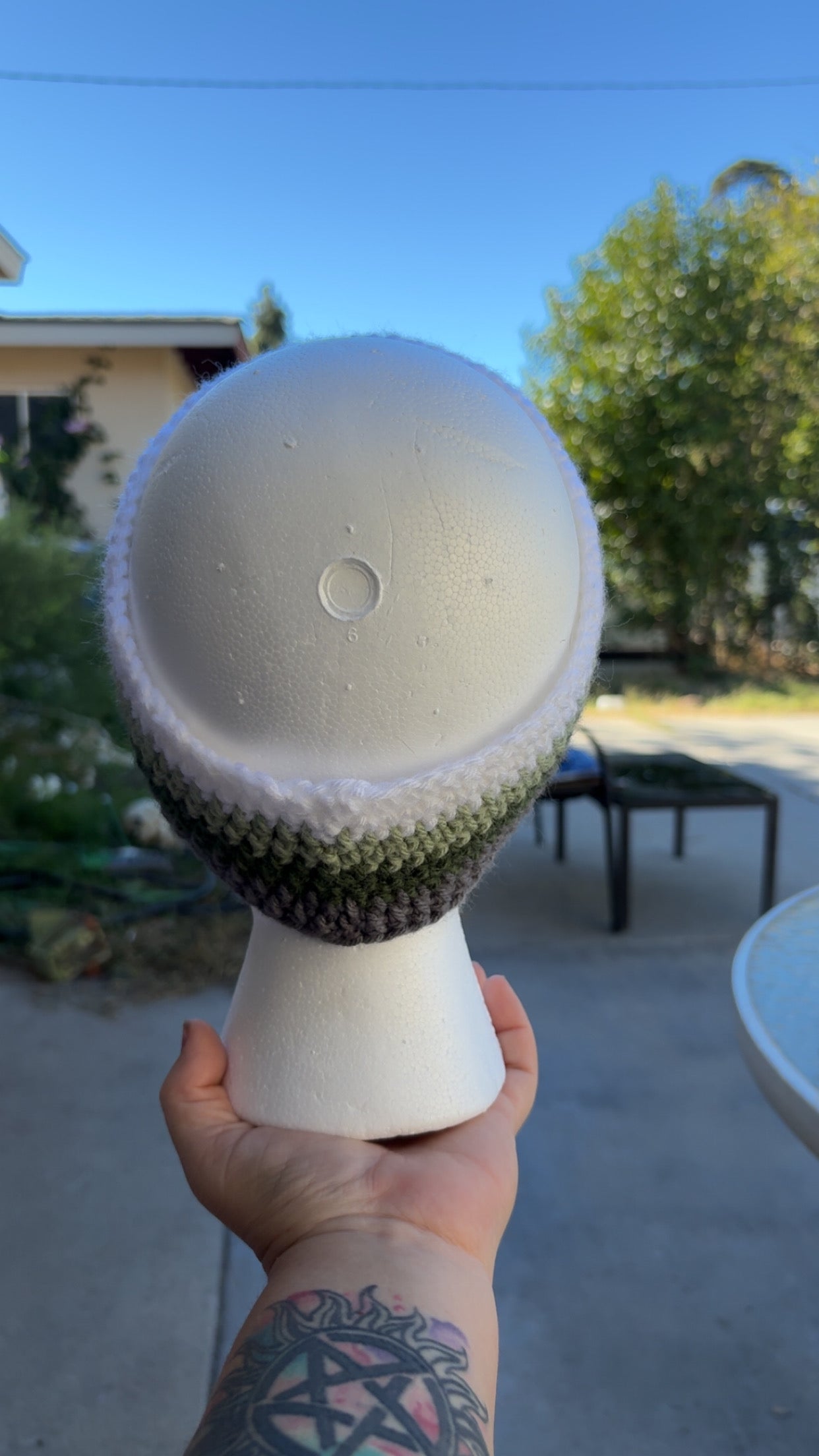 Crochet sage green, dark green, gray and white headband.